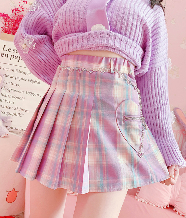 Pink Hearts Pleated Skirt